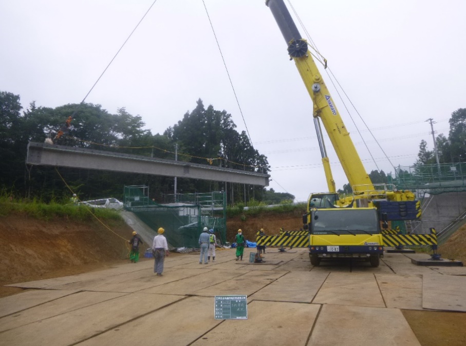 このようにして作業時間短縮ができ、全てのPC桁(4本)の架設を午前中に完了することが出来ました。