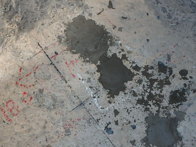 底版CON斫り完了後、鉄筋探査工にて既設鉄筋の墨出しを行いました。