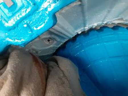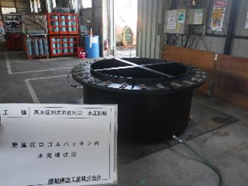 水圧を作用させ、2時間後のエントランス状態を確認し、漏水の有無やゴムパッキンの変形がないことを確認しました。(写真-1)