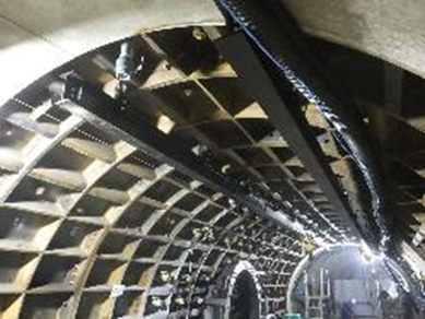 - 掘進機隔壁に高圧ジェット(15MPa)を取り付け、泥岩層掘進時にはジェットを使用しながら掘進することで、チャンバー内の閉塞を起こさずに掘進できました。(写真-5)