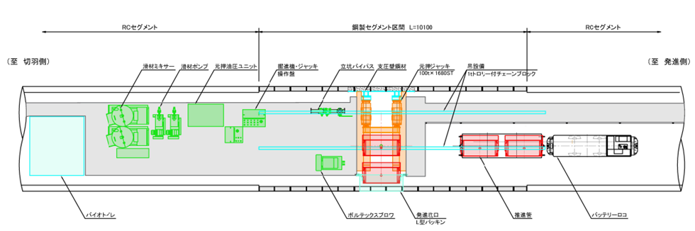 | 発進箇所 | : | 外径φ3,950mm、内径φ3,600mm 鋼製セグメント |