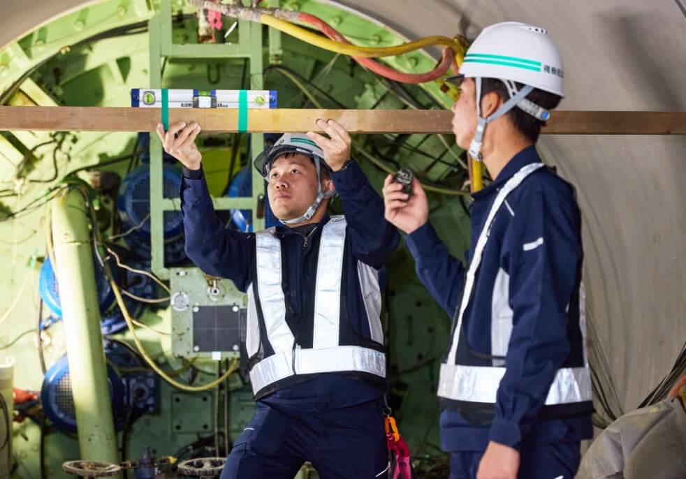 地中に縦穴を掘って、そこから地下管路をつくる「推進工法」。